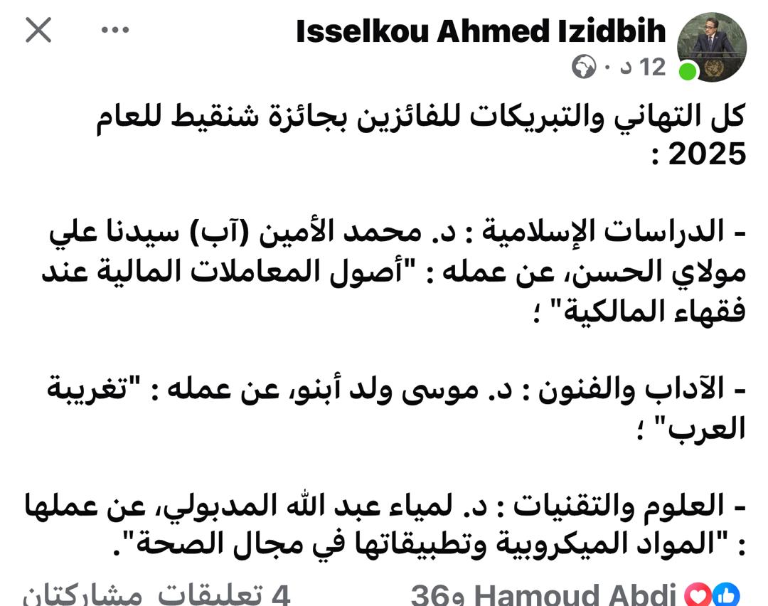 إعلان أسماء الفائزين بجائزة شنقيط للعام 2025 | موريويب