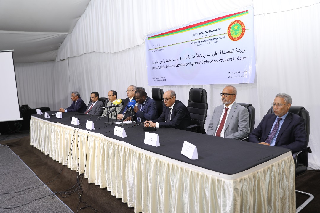 وتشتمل ورشة المصادقة على المدونات الأخلاقية للقضاة وكتاب الضبط والمهن القانونية، التي تستمر ثلاثة أيام، على ثلاث ورشات فرعية، خُصِّصت واحدة منها للمصادقة على مسودّة المدونة الأخلاقية الخاصة بالقضاة، والثانية تتعلق بكتاب الضبط، وثالثة تخص المهن القانونية الحرة.