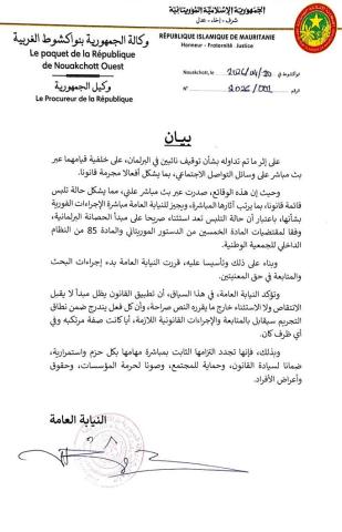 على إثر ما تم تداوله بشأن توقيف نائبين في البرلمان، على خلفية قيامهما عبر بث مباشر على وسائل التواصل الاجتماعي، بما يُشكّل، أفعالاً مجرّمة قانوناً.
