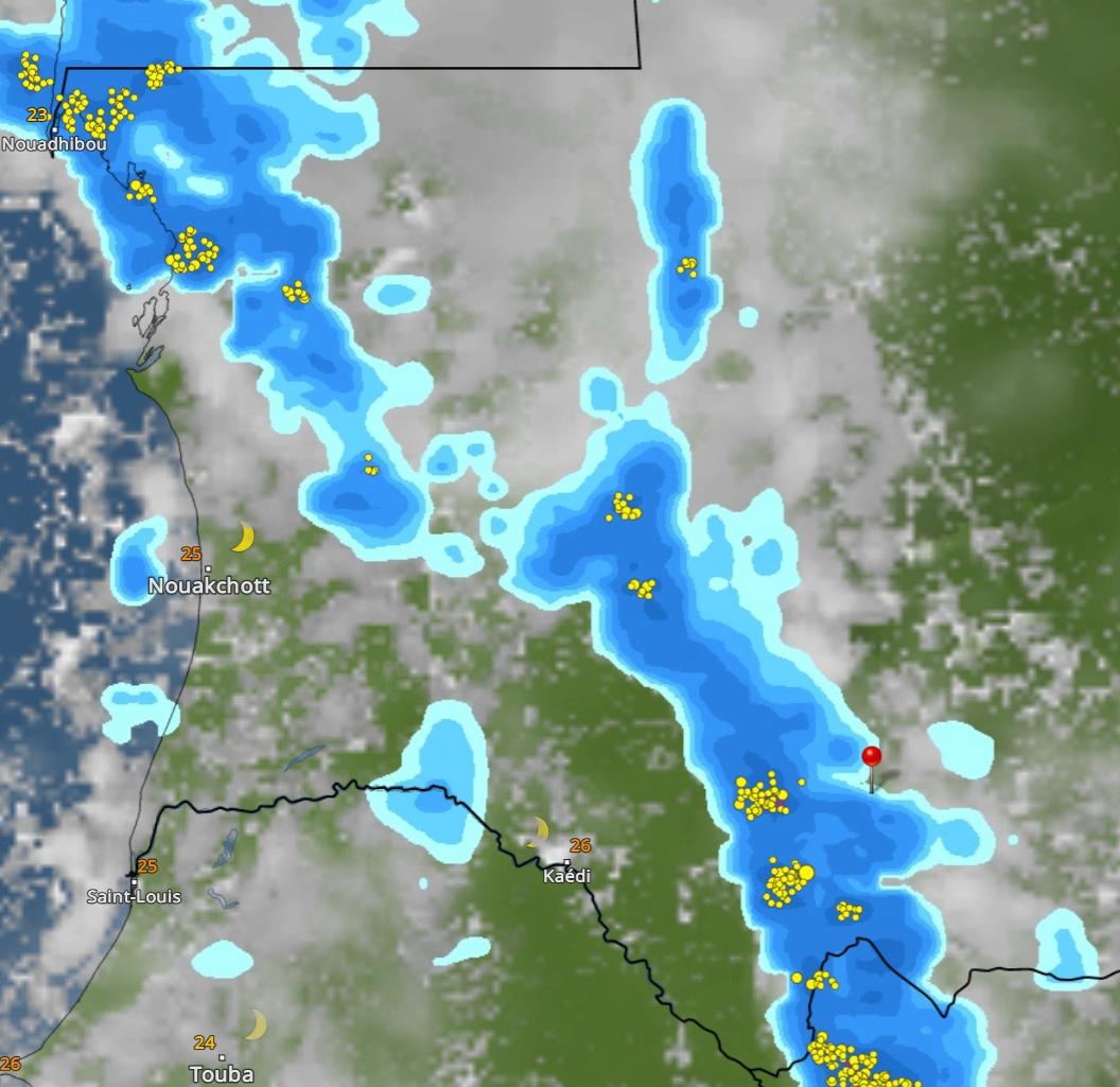 وستشهد ولايات الحوضين الشرقي والغربي، والعصابة، وكيدي ماغا، وكوركل، والبراكنة، وتكانت، وآدرار، وتيرس الزمور، وإنشيري، والترارزة، وداخلت نواذيبو، تساقطات مطرية لكن بصورة متفاوتة.
