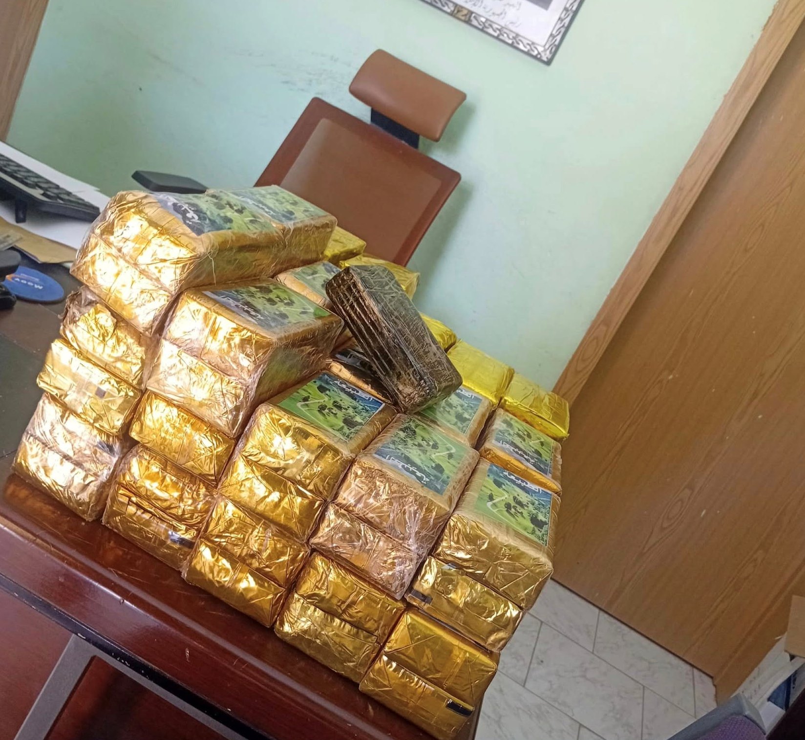وخلال التفتيش الروتيني، تم ضبط كمية من المخدرات (الحجر الأسود) مخبأة بإحكام داخل السيارة، بلغ وزنها 36,300 كلغ.