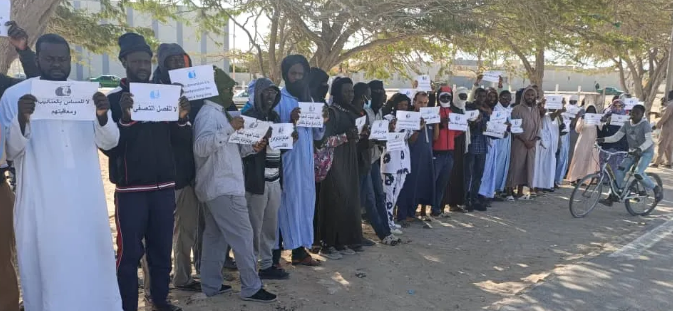 ورفع المحتجون شعارات تندد بتهميش العامل الموريتاني مقابل منح سلطة القرار المطلقة للأجانب.