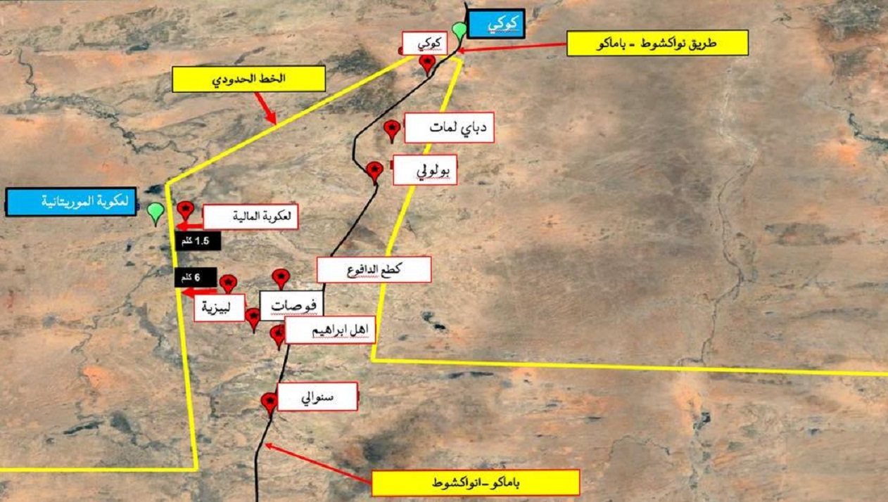 و حرصًا على تنوير الرأي العام، نؤكد أن ما حدث يتمثل في زيارات ميدانية لقرى لبيزية 6كلم من الحدود الوطنية، كطع الدافوع 7كلم من الحدود، أهل ابراهيم 10كلم من الحدود، فوصات 8كلم من الحدود، وهي زيارات سبق أن تمت في فترة سابقة، وتقع هذه المناطق ــ كما هو موضح في الخرائط المعتمدة ــ كلها داخل التراب المالي و على المسافات المذكورة آنفًا، من الحدود الوطنية.