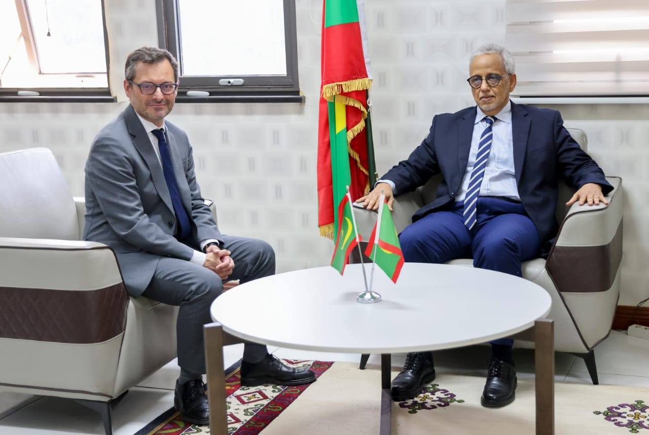 اللقاءٌ بين السفير الفرنسي ووزير الشؤون الاقتصادية والتنمية، عبد الله سليمان الشيخ سيديا كان وديًّا للغاية؛ و قد