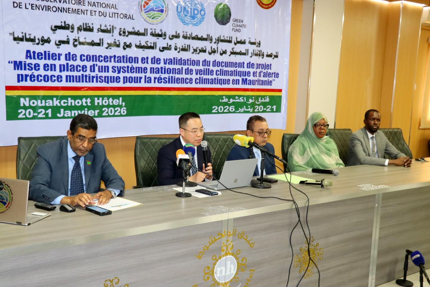 افتتحت وزارة البيئة والتنمية المستدامة، الثلاثاء، ورشة تشاورية مخصصة للمصادقة على وثيقة مشروع «إنشاء نظام وطني للرصد والإنذار المبكر من أجل تعزيز القدرة على التكيف مع التغيرات المناخية في موريتانيا»، وذلك في إطار أنشطة المرصد الوطني للبيئة والساحل.