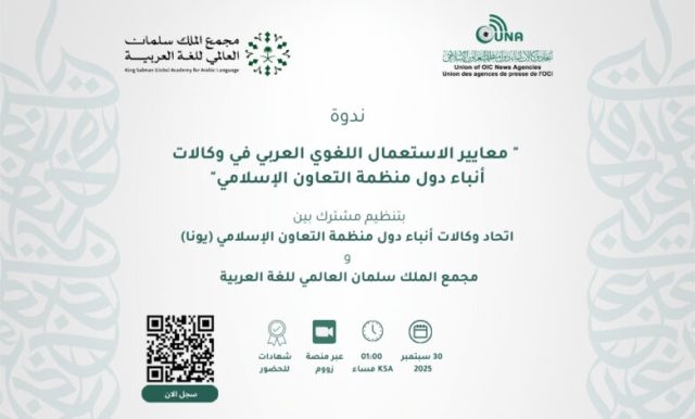 L’Union des Agences de Presse des États membres de l’OCI (UNA), en coopération avec l’Académie mondiale Roi Salman pour la langue arabe, a organisé, mardi dernier, un séminaire virtuel d’importance sous le titre : « Normes d’utilisation de la langue arabe dans les agences de presse des États membres de l’OCI ». L'événement a enregistré une large participation de représentants des agences de presse membres ainsi que de nombreux professionnels des médias issus de diverses institutions.