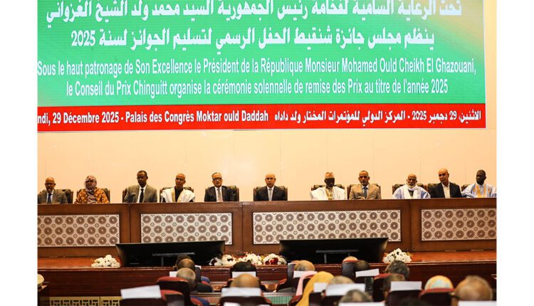 Sous le haut patronage de Monsieur Mohamed Ould Cheikh El Ghazouani, Président de la République, le Centre international de conférences Mokhtar Ould Daddah a accueilli, lundi, la cérémonie solennelle de remise des Prix Chinguetti 2025. Cet événement majeur du paysage intellectuel et culturel a mis à l’honneur des chercheurs et créateurs d’exception, réaffirmant l’engagement de l’État en faveur du savoir et de l’innovation comme leviers fondamentaux du développement.