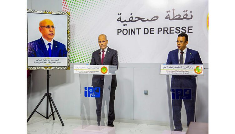 Les ministres de la Formation Professionnelle, de l’Artisanat et des Métiers (porte-parole du gouvernement par intérim), M. Mohamed Malainine Eyih, et des Affaires Islamiques et de l’Enseignement Originel, M. El Vadhil Sidaty Ahmed Louly, ont présenté mercredi soir les principales décisions adoptées lors du Conseil des ministres du matin. Au cœur des annonces : un plan de restructuration du secteur de l’enseignement originel, la préparation du Hajj 2026 et la création d’une Agence Nationale de Formation Technique et Professionnelle.